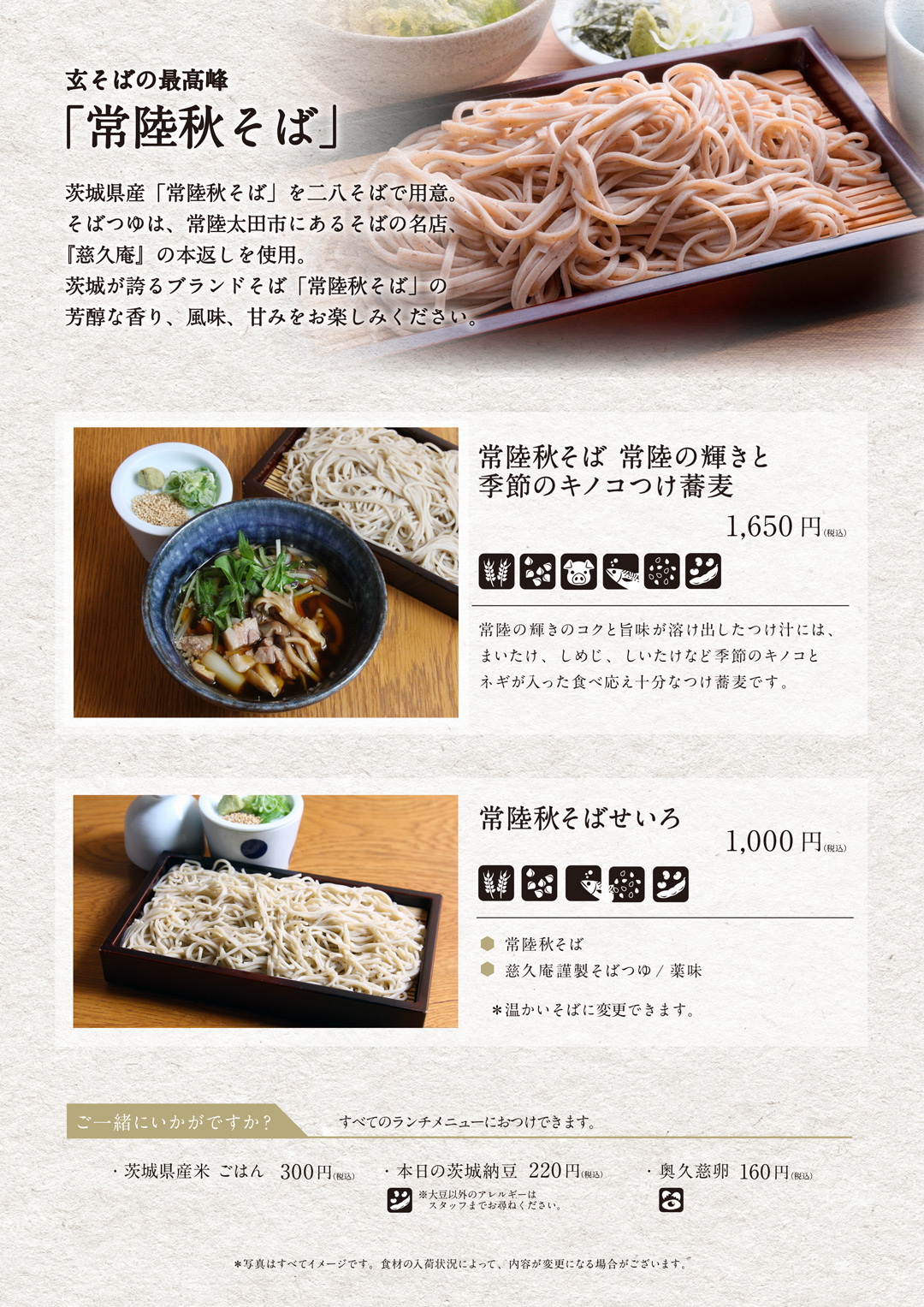 茨城が誇るブランドそば「常陸秋そば」を使用。
