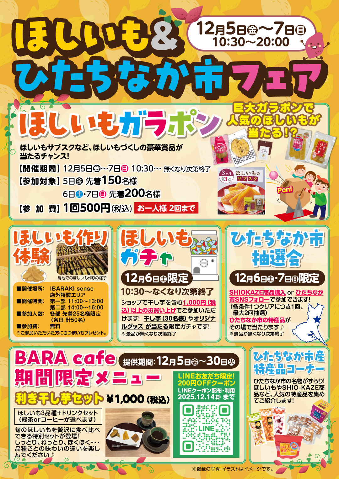 IBARAKI senseでは、3日間限定で、ほしいもとひたちなか市の魅力をお届けする『ほしいも&ひたちなか市フェア』を開催いたします。