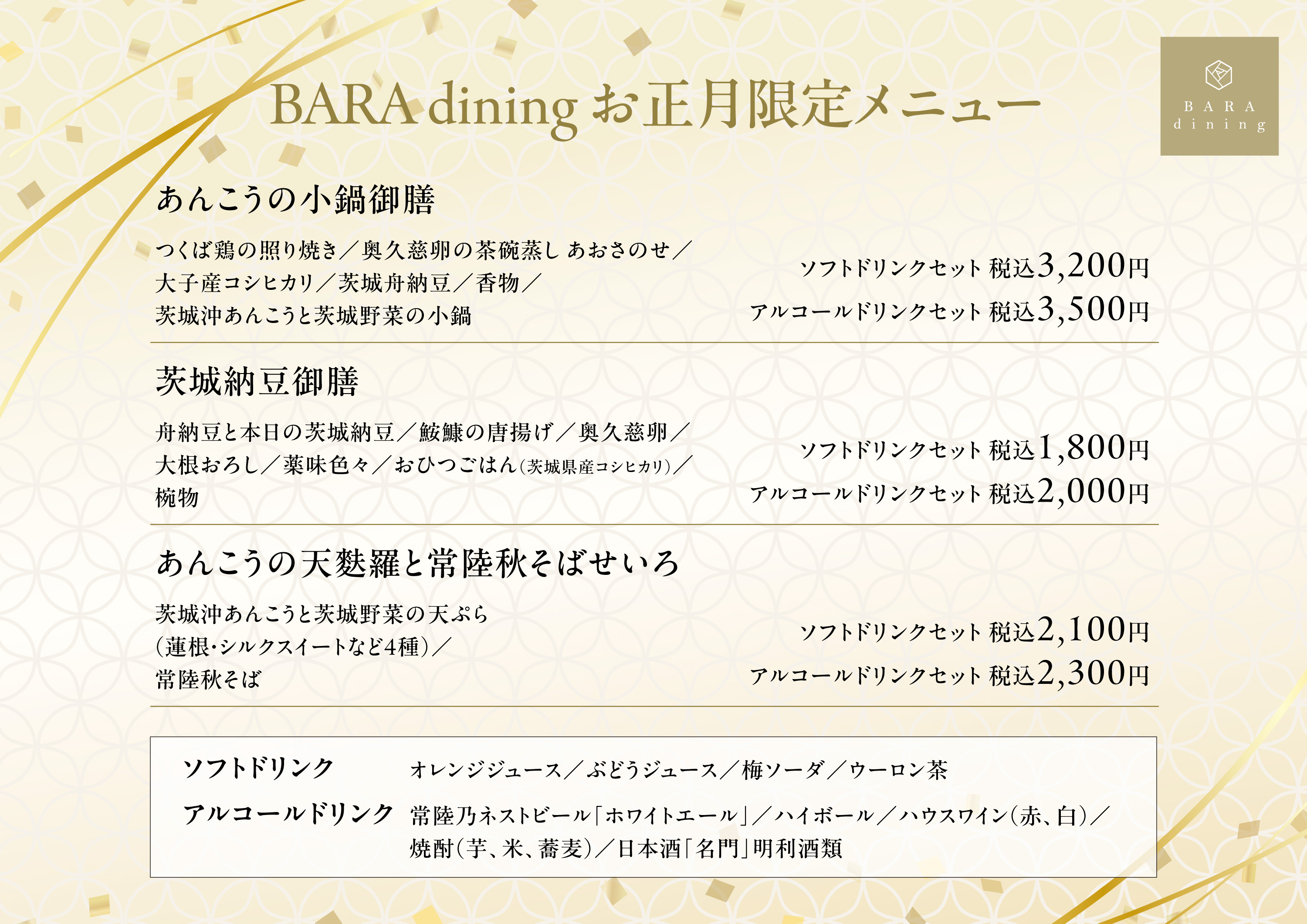 2026年1月2日・3日の2日間、バラダイニングはお正月特別メニューでの営業となります。