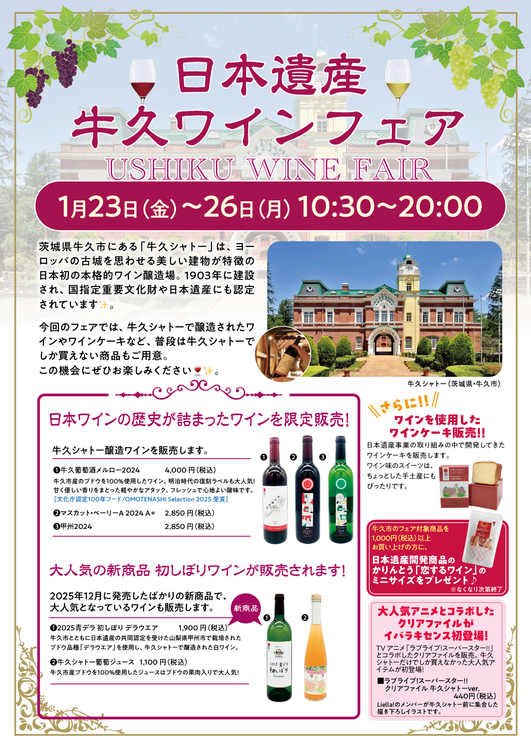 IBARAKI senseでは4日間限定で、「日本遺産 牛久ワインフェア」を開催します。