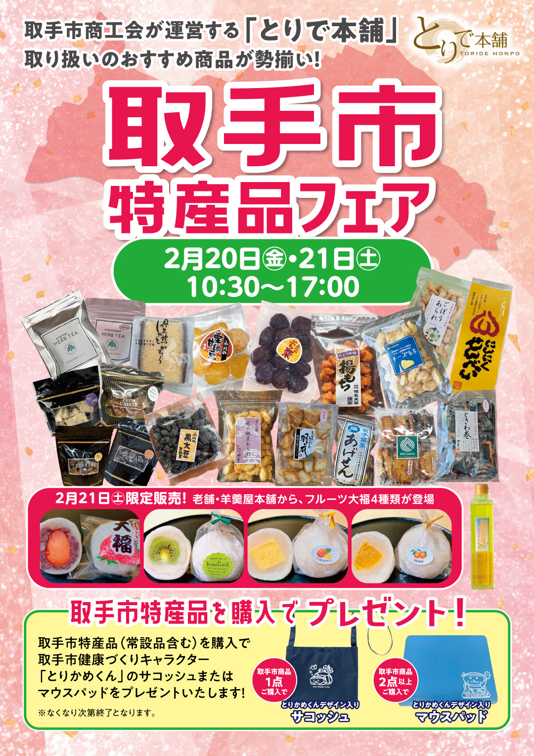 期間中、取手市特産品(常設品含む)をご購入の方にプレゼント!