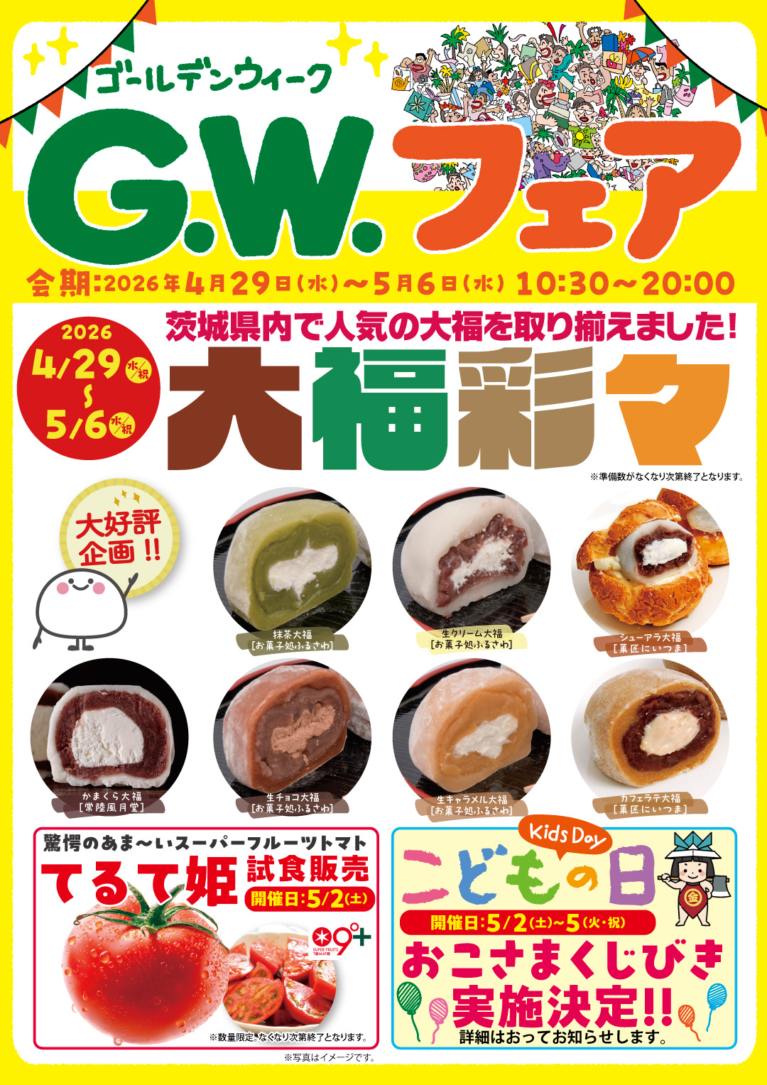 イベント期間中、茨城県内で人気の大福を扱う3店舗より、全7種類の商品を集めて販売いたします。