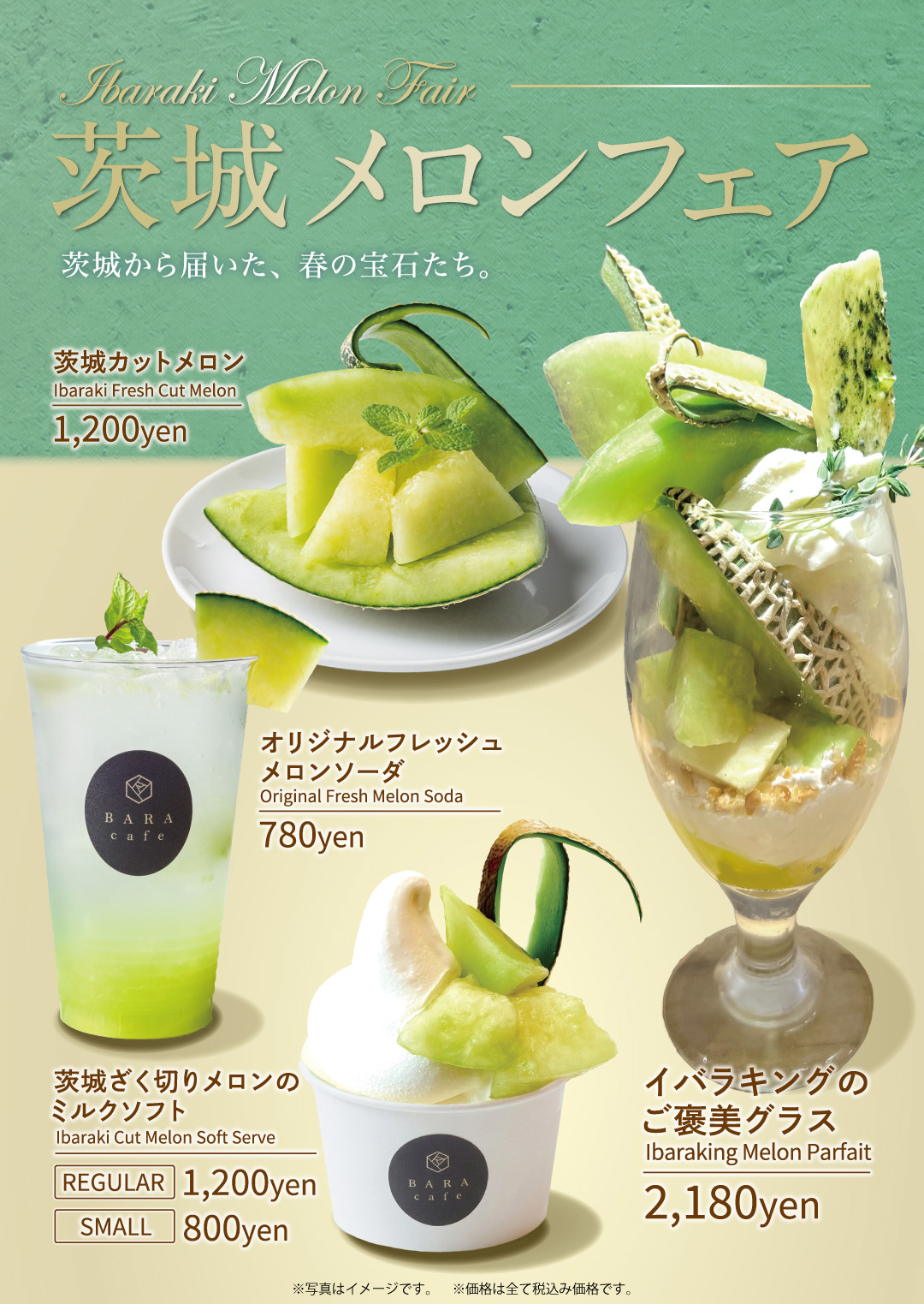 BARA cafeでは、県オリジナル品種「イバラキング」や県産のメロンを贅沢に使用した期間限定メニューをご提供いたします。